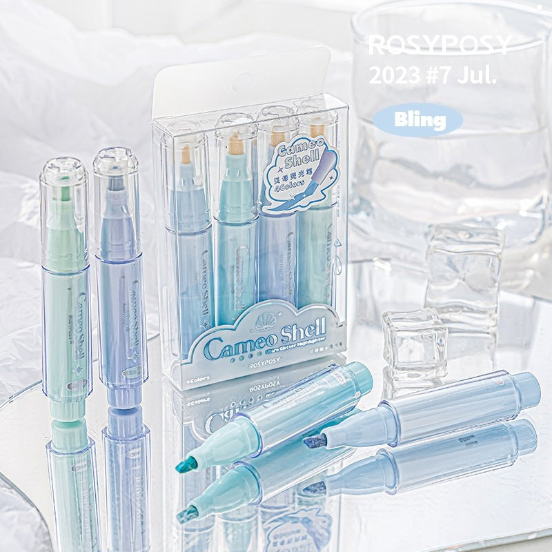 Rosy Posy Cameo Shell Glitter Highlighter Markers 4pcs