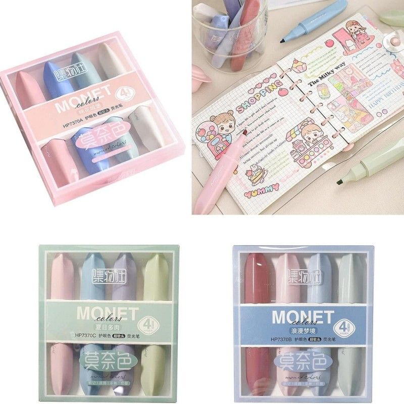 Jiwusha集物社护眼莫奈色荧光笔夏日多肉 4支